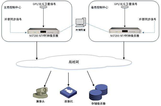 要想很好地解决视频监控中各设备的时间同步问题,可以在视频监控网络中加入基于卫星同步的NTP时间服务器,再通过以太网分发NTP时钟信号到各个设备。
