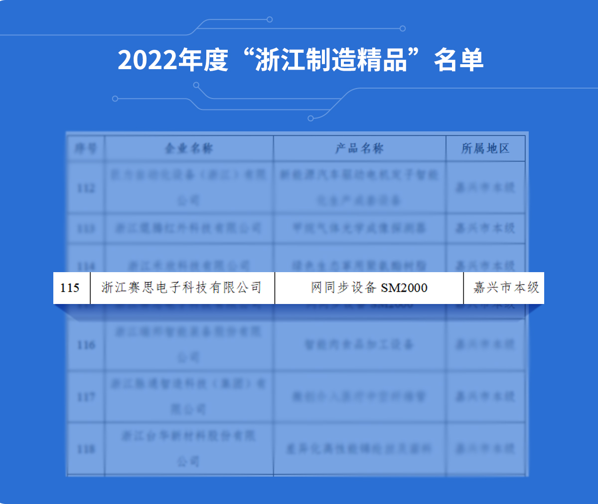 此次入选2022 年度“浙江制造精品"名单,是社会各界对赛思持续深耕时频技术的认可,也是赛思构建以时频研发为基础、市场为导向、产、学、研、用相结合的企业创新发展体系建设的有力一步。