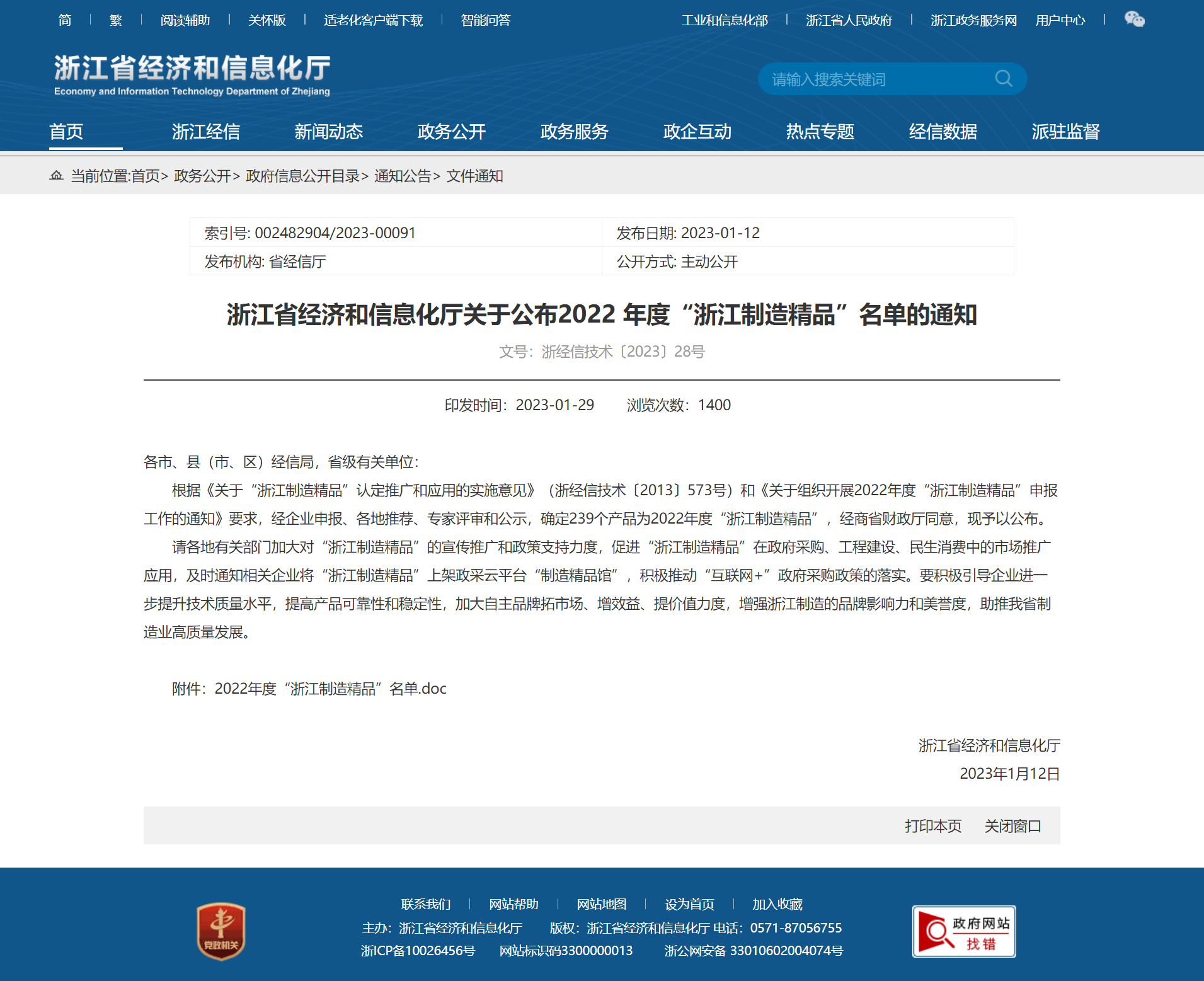 “浙江制造精品"的评选,旨在重点选择一批具有自主知识产权和自主品牌、技术水平高、附加值大、产业能级高、带动作用强的产品,以提升企业市场竞争能力和产业整体水平,加快浙江产业转型升级和新兴产业培育发展。