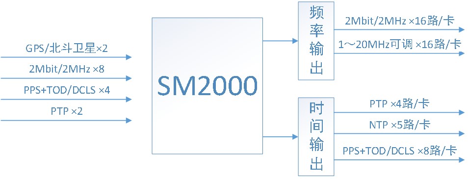 SM2000除了提供传统的2Mbit/2MHz频率同步信号外,还可以提供PPS+TOD、NTP、PTP等时间输出,是一款时频一体化的同步设备。